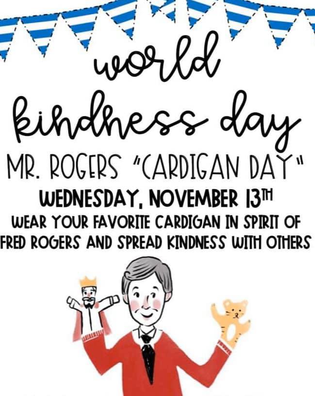 My friend also shared that people were planning to wear cardigans to honor one of the world’s kindest people, Mr. Rogers, on the 13th. I knew that I had to take part in this celebration. I had to wear a cardigan on Wednesday.