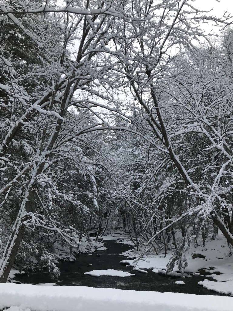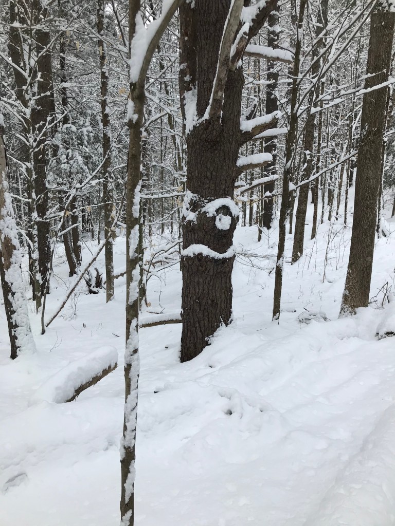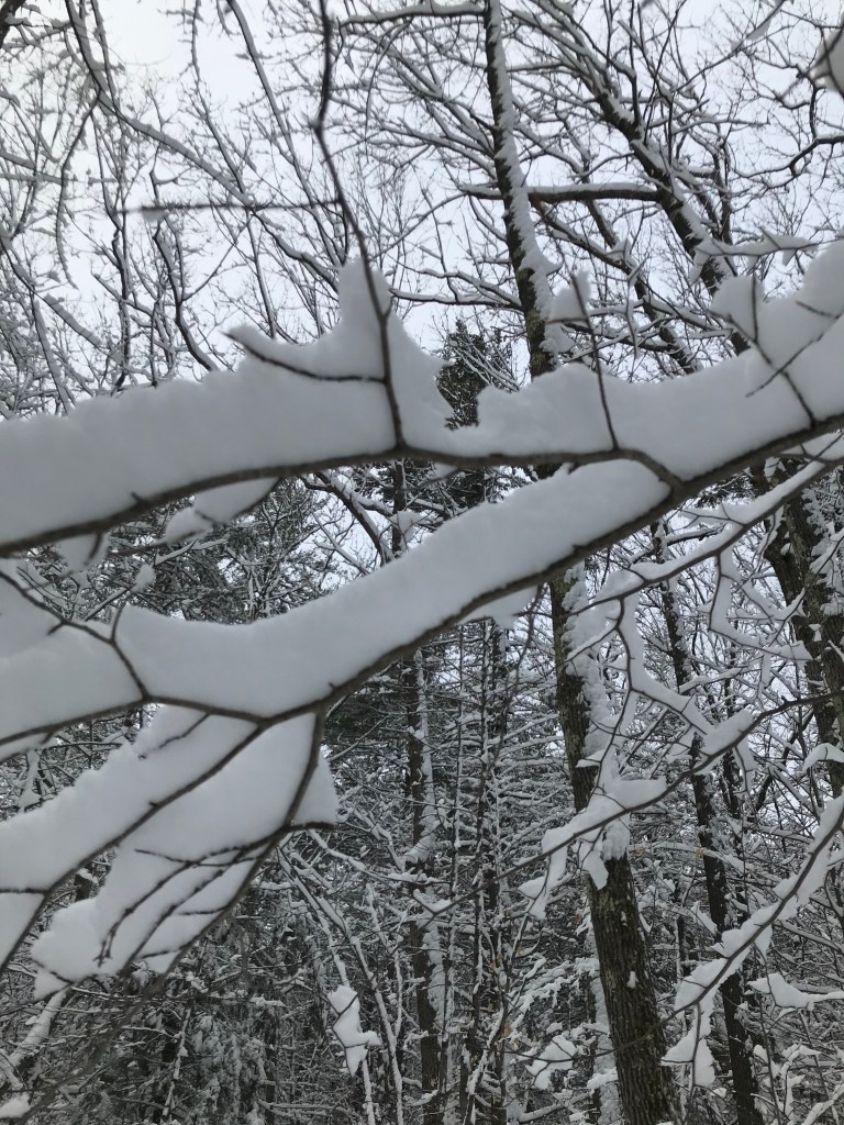That snow happened on March 24. It snowed at least 6 inches over the course of the night, and when we awoke, it was a winter wonderland yet again. I knew the snow would melt that day because the forecast called for temps in the 40s. That meant that I had to get up early and get out there and enjoy that snow, so my husband and I went for a walk in the woods.