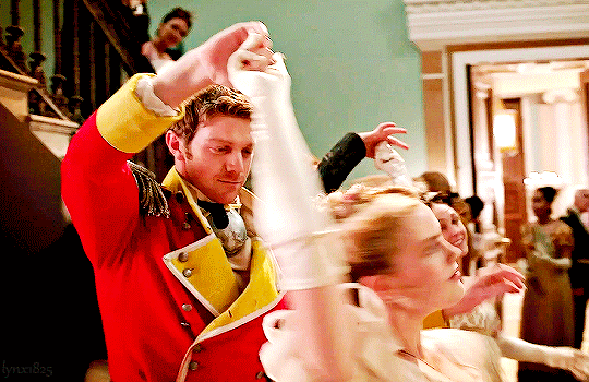 When Colbourne enters the ball and he and Charlotte make eye contact, the gazing is ripe with all of that sexual tension. Then their dance. Sheesh. The camera angles, the breathing, the hands touching. This was like a sex scene. Charlotte says she felt more alive dancing with him than she has in a while. I can see why!