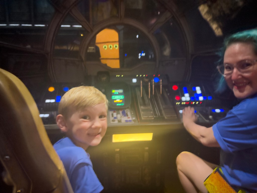 The two rides in SW I enjoyed most were Smugglers Run and Rise of the Resistance. First up, Smugglers Run. I got to sit in the Millennium Falcon, y’all! Here’s Disney’s description: