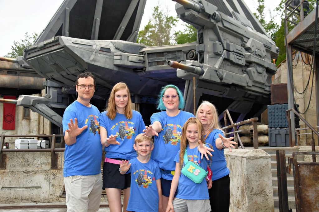Did I tell you that we wore matching shirts to the theme parks? We had matching Magic Kingdom shirts, Epcot shirts, and SW shirts. Here’s the one we wore to HS.