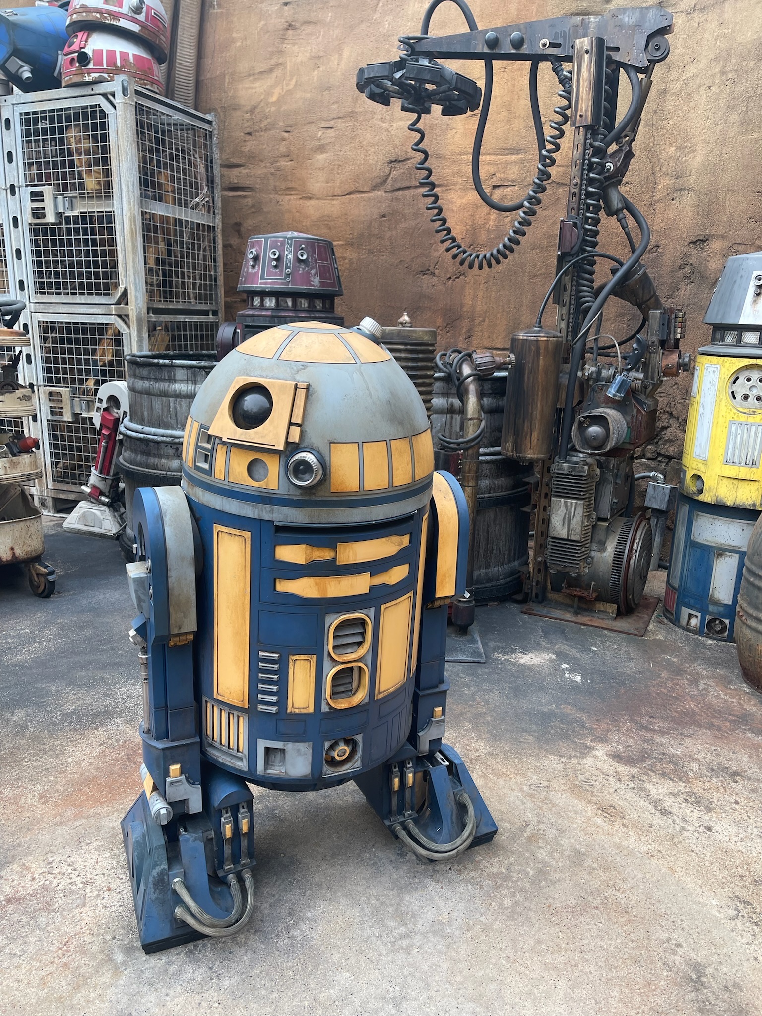Not only are there cool rides, but also character meet ups (Chewbacca, BB-8, Darth Vader, and Stormtroopers) and an entire section of the park that makes you feel like you are really on a SW set. Check it out: The Millennium Falcon, an AT-AT Walker, Stormtroopers, an R2-D2 like droid, and some crazy person hiding in a doorway.