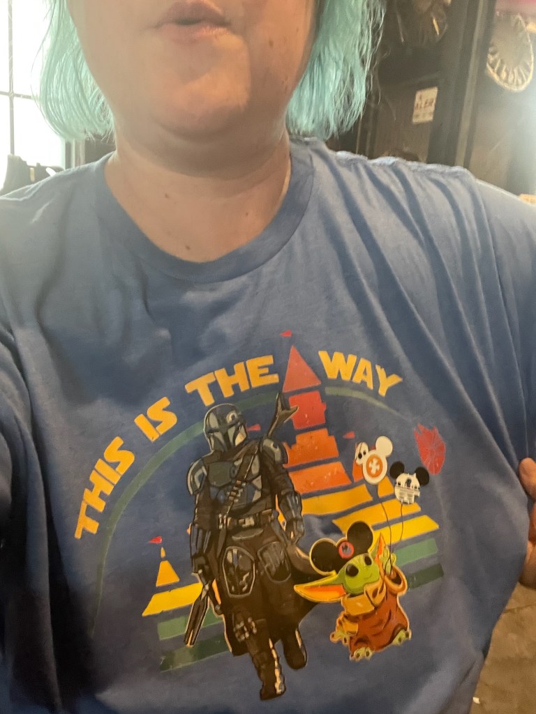 While the Mandalorian and Grogu are not featured at the park, we thought it would be fun to wear this shirt (and we didn’t know that there wouldn’t be anything related to these two characters) because we love the show.